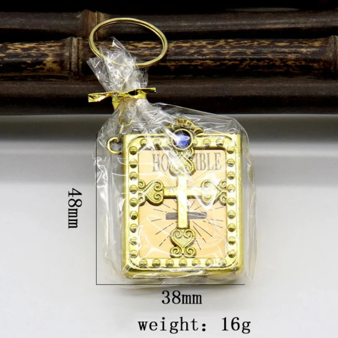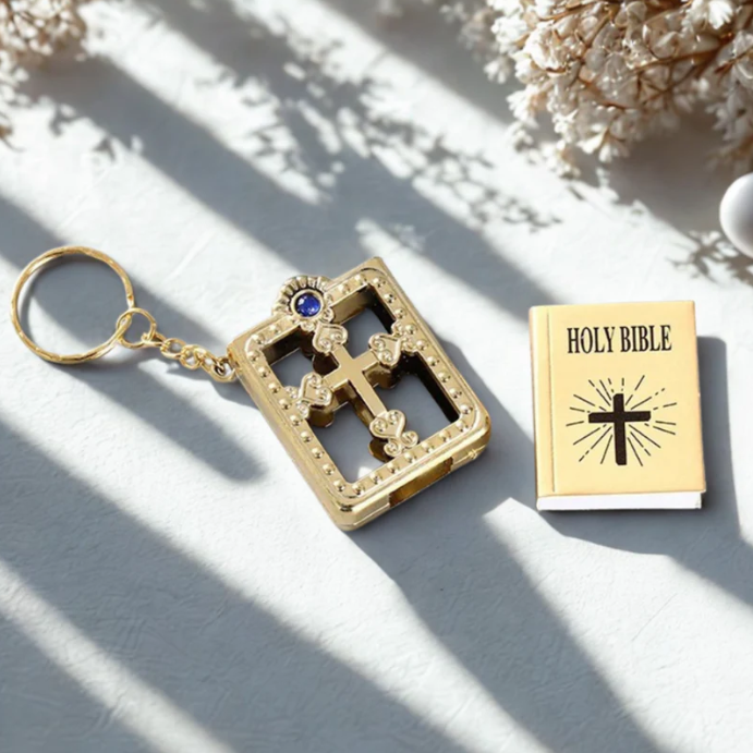 It’s a real, readable English Mini Bible in the form of a keychain—beautifully crafted, compact, and always within reach.