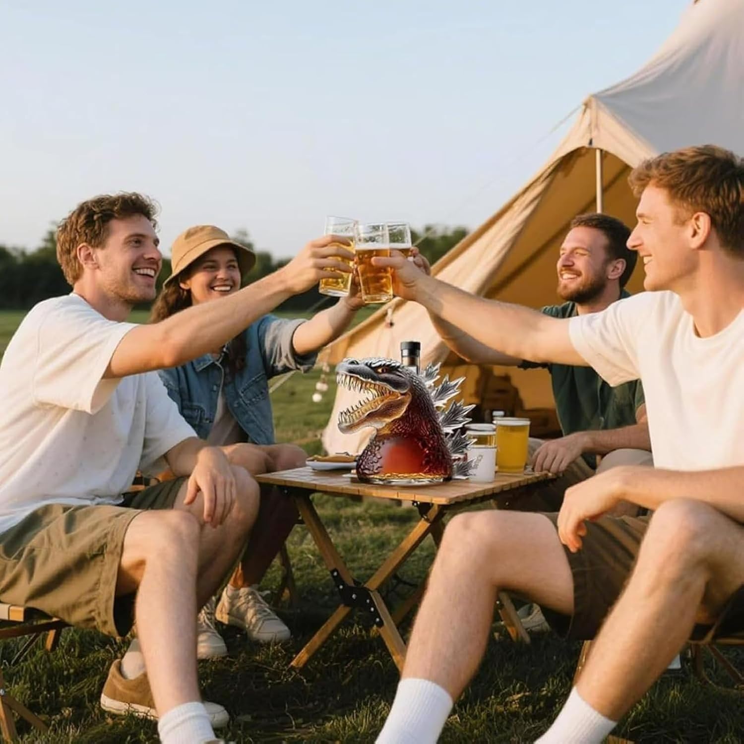 The Godzilla Whiskey Bottle is a sculptural piece that combines playful design with functional elegance. Molded in robust, lead-free glass into a detailed dachshund silhouette—complete with floppy ears and expressive posture—it holds your favorite whiskey while serving as an eye-catching bar or shelf accent. The sturdy cork/glass stopper preserves aroma, while the wide, weighted base ensures stability. Perfect for collectors, dog lovers, or anyone looking to upgrade their home bar with charm and personality, this decanter elevates every pour into an experience.