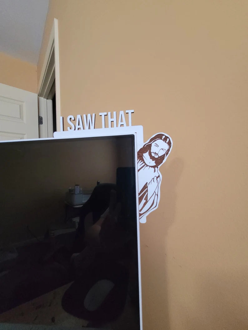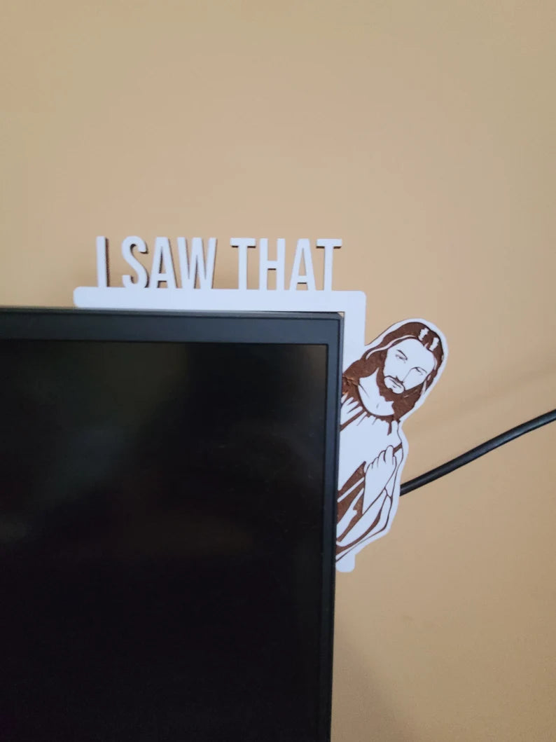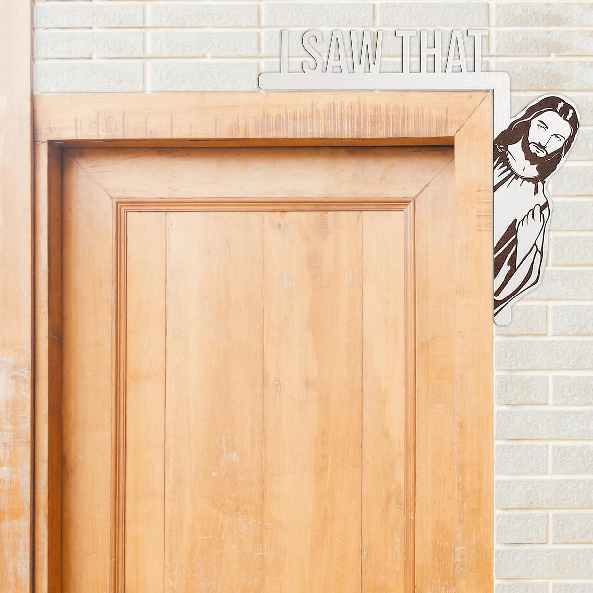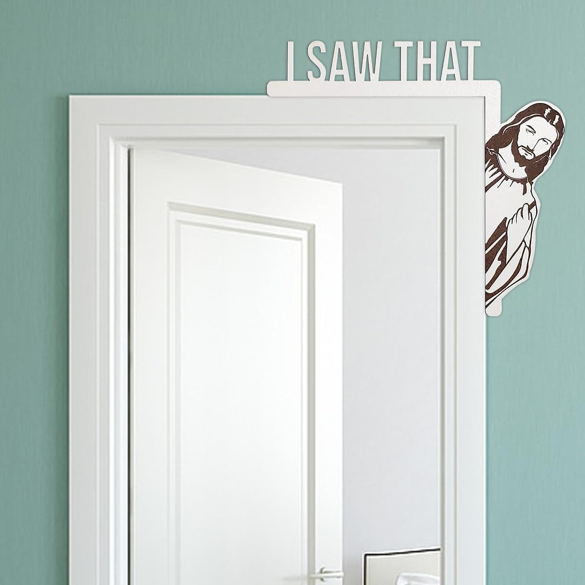 The “I Saw That” Jesus Door Sign is a witty, faith-based decor piece designed to catch attention and elicit smiles. Crafted from wood and laser-engraved, it features Jesus peeking around a door frame with the playful warning, “I SAW THAT.” Sized to fit door corners, this charming sign serves as a light-hearted reminder to stay on the right path—perfect for homes, offices, or as a quirky gift that blends humor with spirituality.