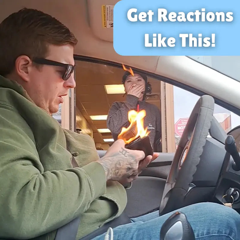 Set everything ablaze with attention using the Fire Wallet Magic Prank Gift—a wallet that ignites illusion with a burst of flame when you open it. Designed to hold your cash and cards safely, it features fire-flame effects without real combustion, creating a dramatic surprise in magic shows, prank videos, or playful moments. Faux leather or premium material gives it a lifelike look, while stealthy flame bursts add wow factor. If you want to wow friends, startle onlookers, or snap epic content, this prop wallet delivers sizzle and style.