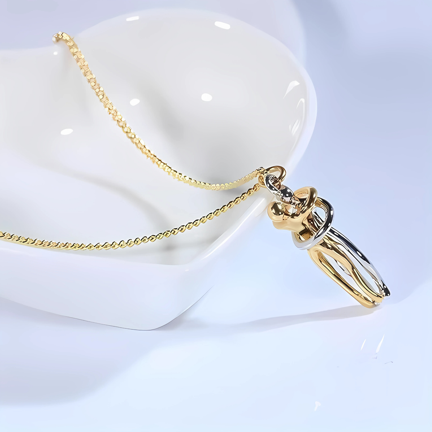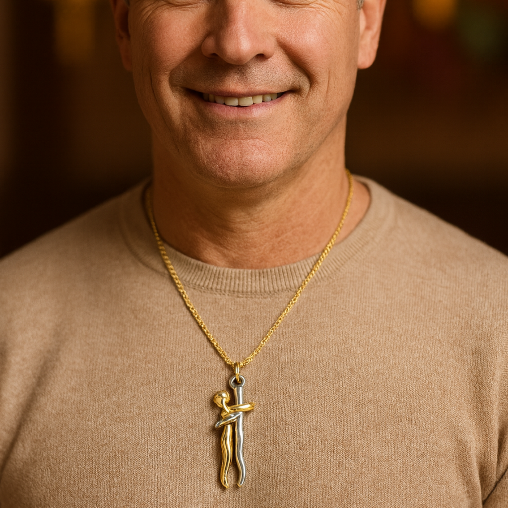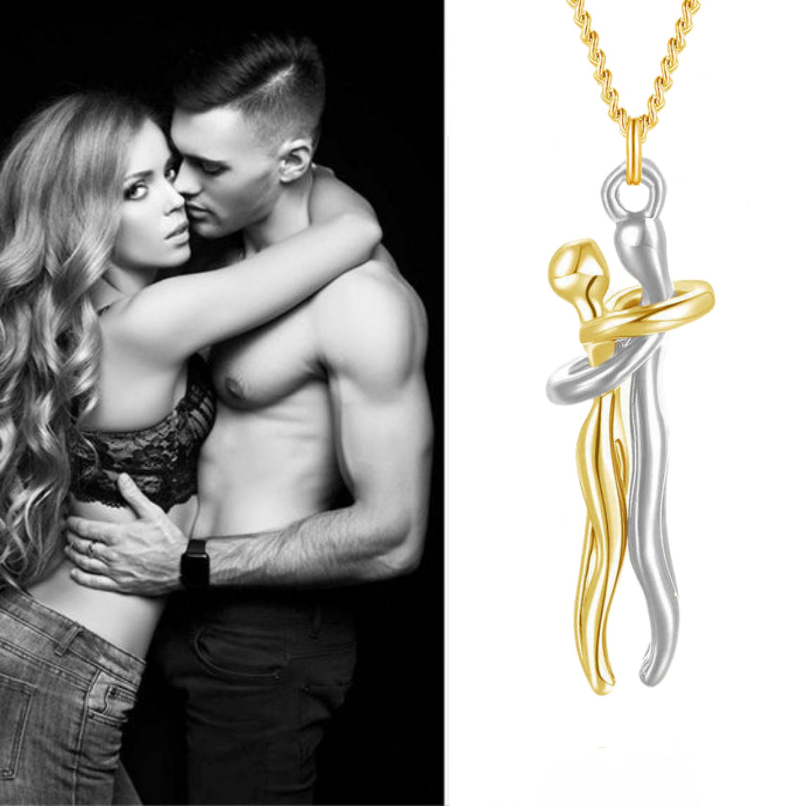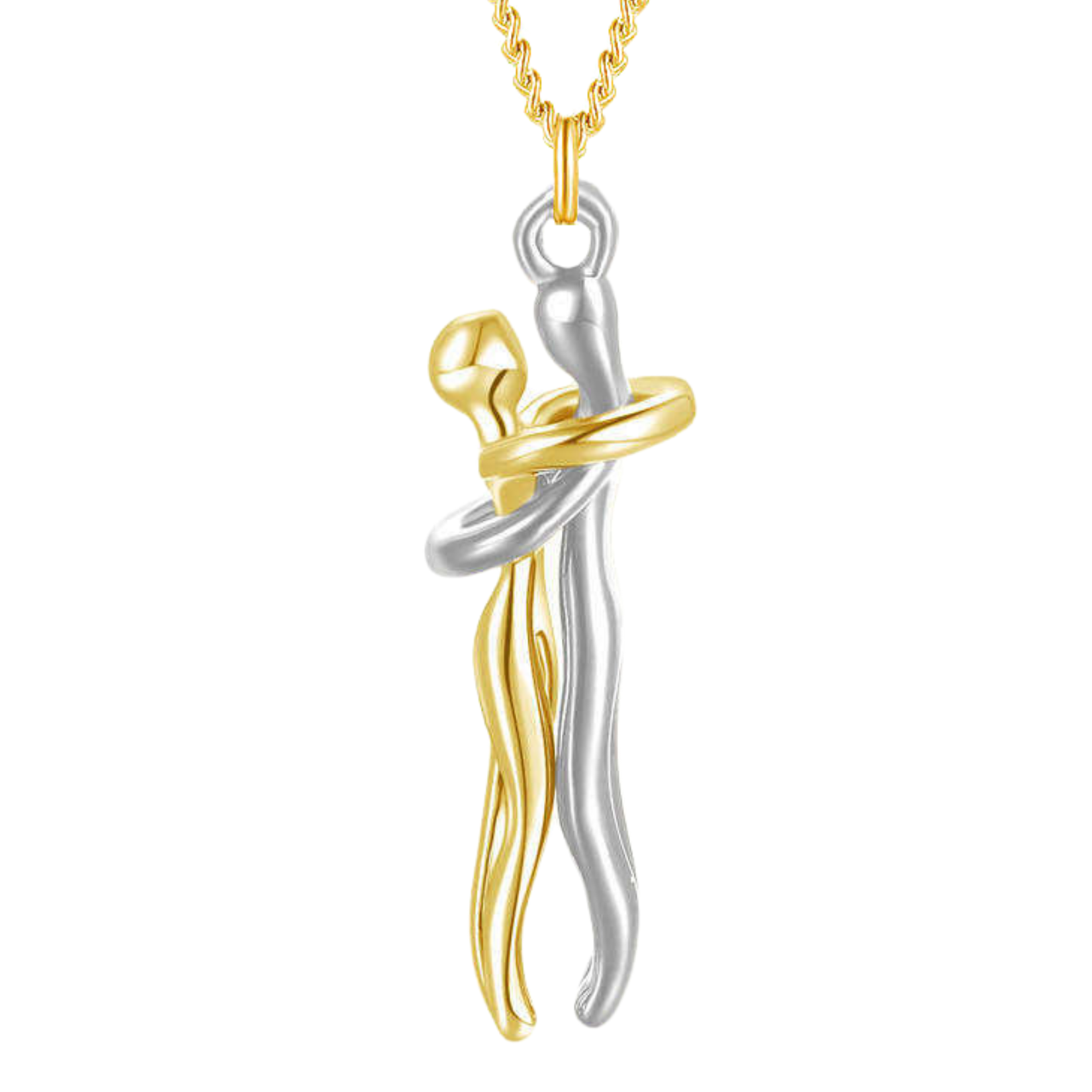 The embracing design speaks louder than words, representing the deep connection that two hearts share. Every glance at the necklace reminds you that love and unity are unbreakable, no matter the distance or time apart.