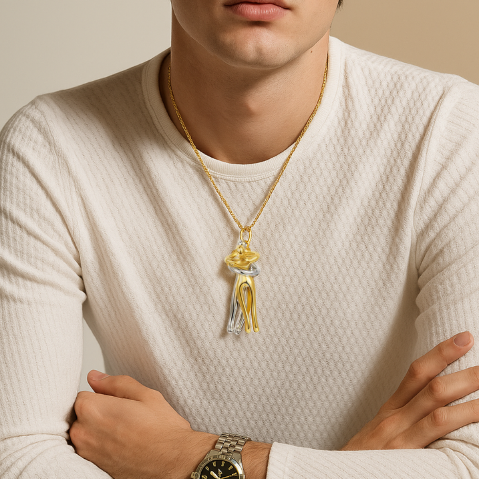 The Unity Couple Necklace is a pendant that symbolizes love, unity, and togetherness—crafted to represent a warm embrace you can carry close to your heart.