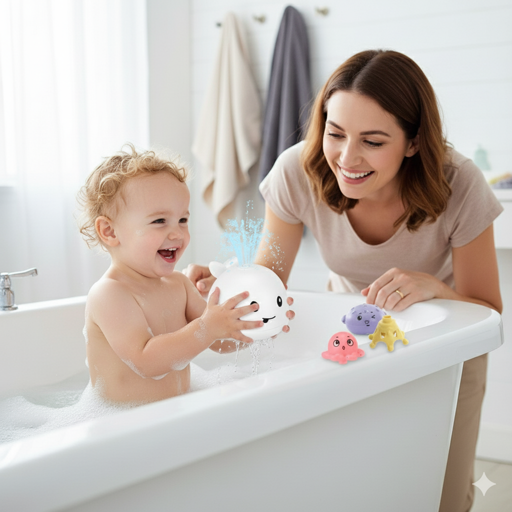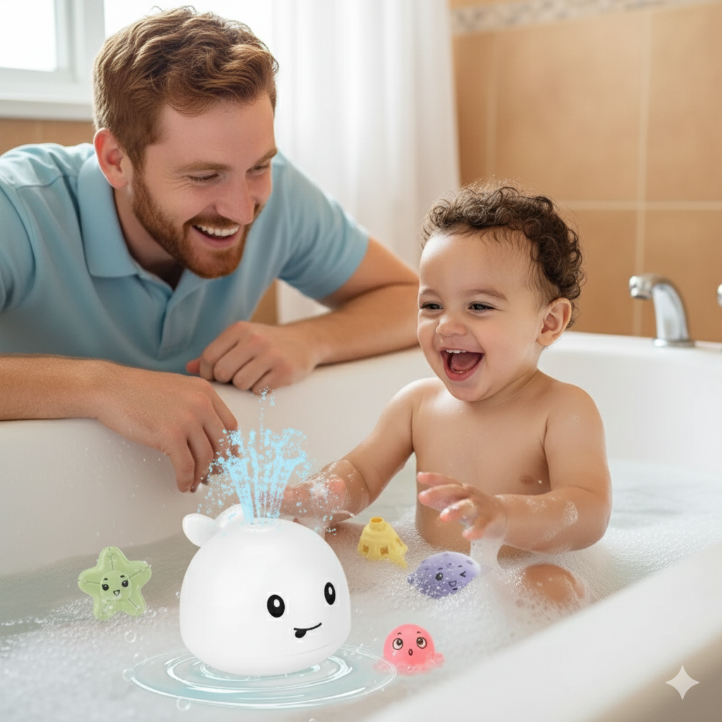 The Light-Up Whale Water Spray Toy is a cute, battery-powered bath toy shaped like a smiling whale. It automatically sprays water and flashes colorful lights when placed in water, turning bath time into an engaging and playful experience for babies and toddlers.