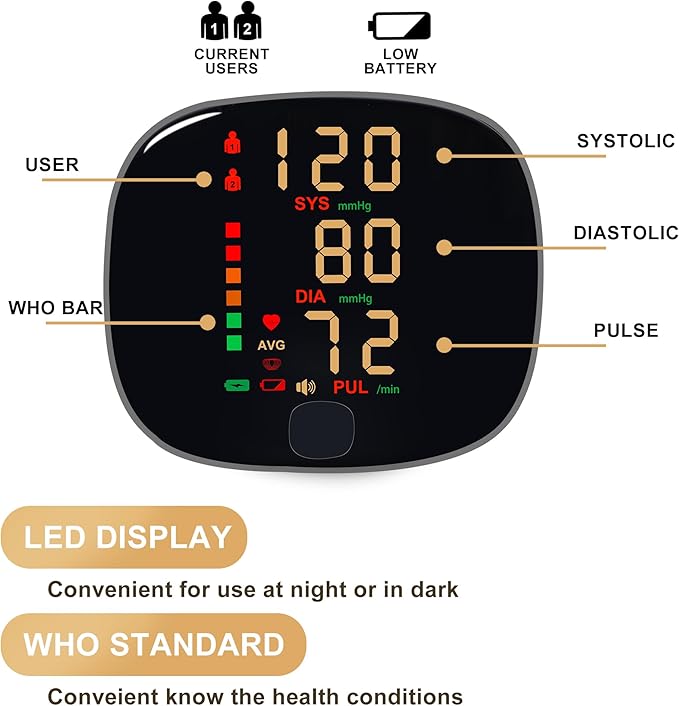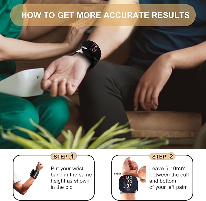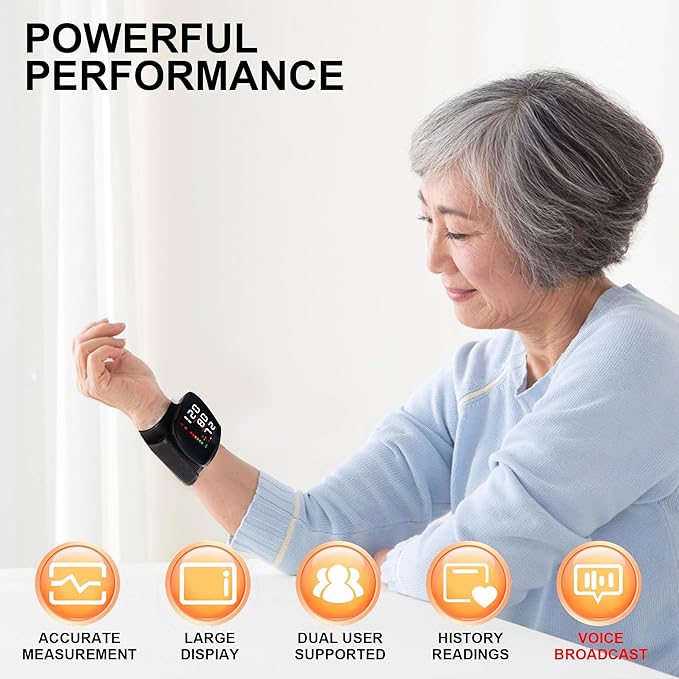 The Rechargeable Wrist Blood Pressure Monitor makes tracking blood pressure at home simple and seamless. It features voice broadcast (which automatically announces your readings), supports two separate users with 99 memory slots each, and uses a rechargeable battery via USB-C—no more worrying about batteries. Its compact, adjustable wrist cuff (fits 5.3–7.7 inches) ensures a snug fit, while the single-button operation and protective carrying case make it travel-friendly and easy for anyone to use.